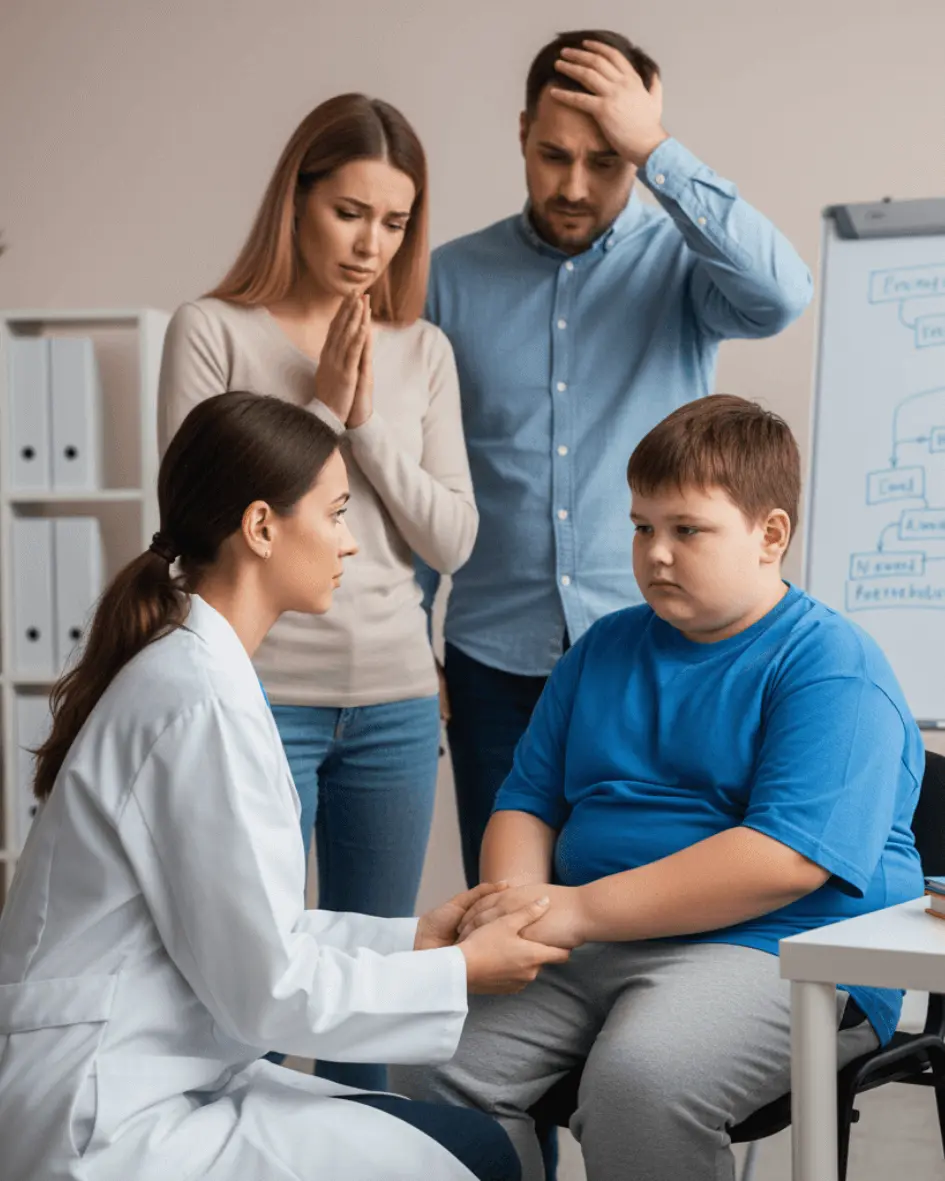 Uma abordagem que coloca a saúde do crescimento no centro, não o peso. Que respeita a complexidade da doença e trabalha com a família inteira, não apenas com a criança.